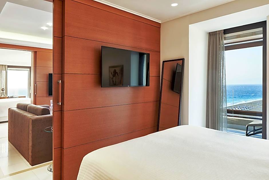 Fitted with a walk-in shower, this air-conditioned suite opens to a balcony with Aegean Sea views and has 2 separate bedrooms. It offers: -a seating area with flat-screen TV -a kitchenette with Nespresso coffee machine, ceramic cooking hobs and oven -free WiFi