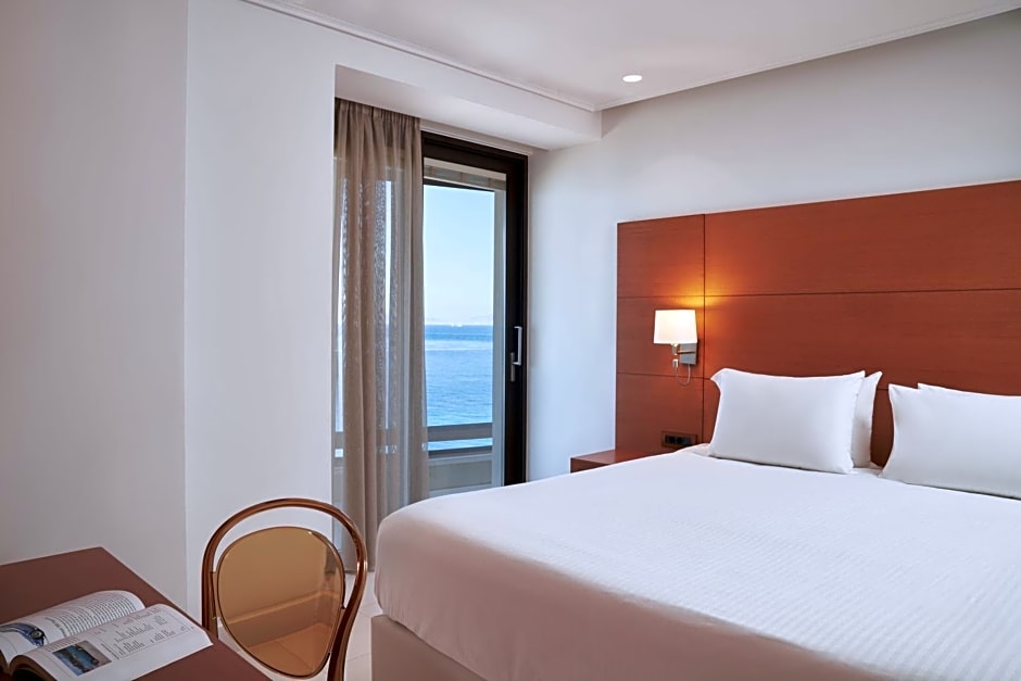 Located on the top floor, this spacious, penthouse suite opens to a balcony with panoramic views over the Aegean Sea. It has 2 bathrooms fitted with walk-in shower and also includes: -a spacious seating area with flat-screen TV -a kitchenette with Nespresso coffee machine, ceramic cooking hobs and oven -free WiFi